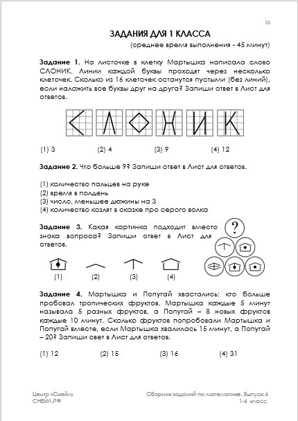 NEW!!! Сборник заданий по Олимпиадной математике для 4 класса Часть 1