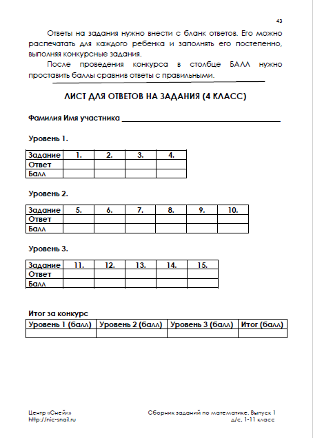 Для выполнения заданий тестирования можно воспользоваться Листом для ответов на задания, предварительно распечатав их для каждого ученика. Задания снабжены правильными ответами для проверки выполненных заданий. В сборнике размещены шаблоны грамот, которые можно использовать в качестве наградного материала для участников. Желаем вам интересной и творческой работы!